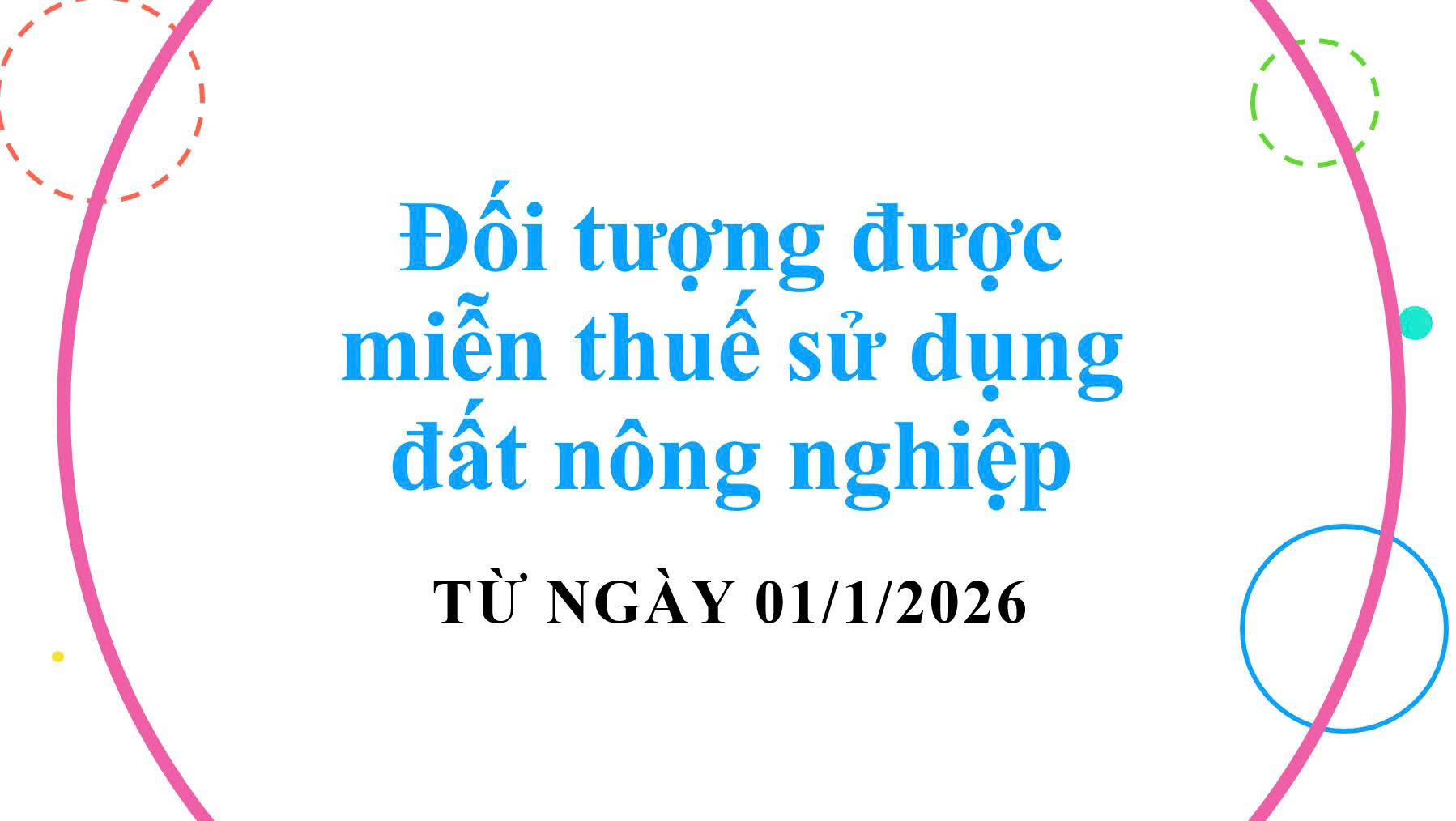 Căn cứ Điều 2 Nghị định 292/2025/NĐ-CP (ban hành ngày 06/11/2025, có hiệu lực từ ngày 01/01/2026) quy định về đối tượng được miễn thuế sử dụng đất nông nghiệp từ ngày 01/1/2026 như sau: